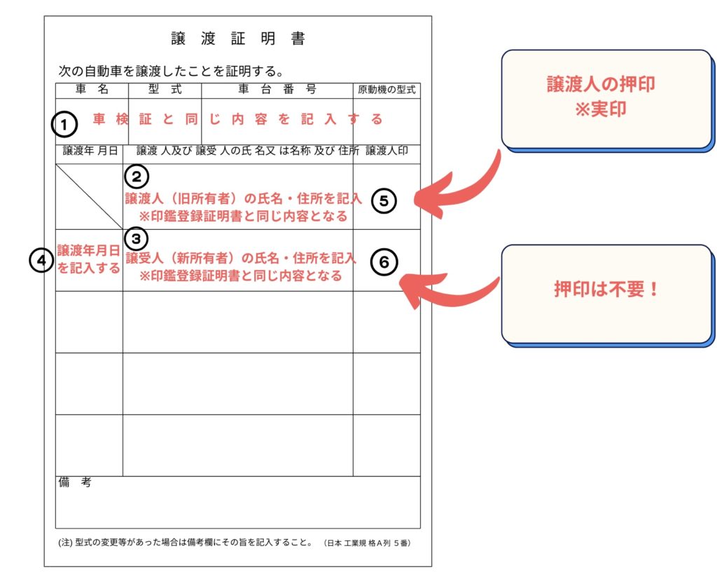 - 譲渡人(旧所有者)は「実印」での押印が必須。