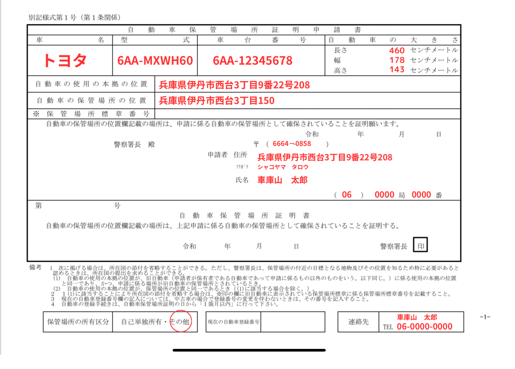 「保管場所標章番号」…こちらは空白で構いません。